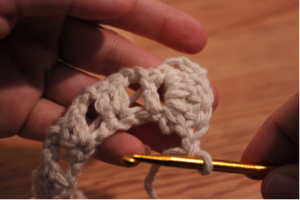 - Ardından 2 zincir çekip yine yan yana ve aynı zincire batma koşuyla 2 trabzan daha yapıyoruz.