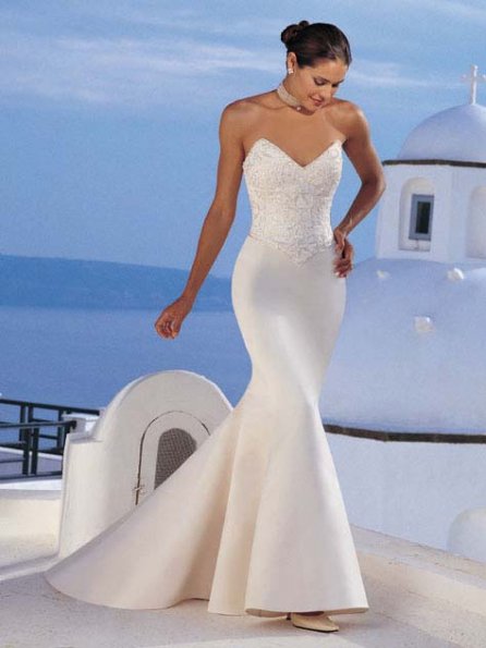 göğüs dekolteli dar ve düz gelinlik modeli,yeni trend gelinlik modelleri